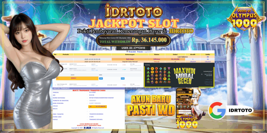IDRTOTO BAYAR LUNAS JACKPOT PERMAINAN SLOT Gates Of Olympus 1000 Rp.36.145.000 – LUNAS