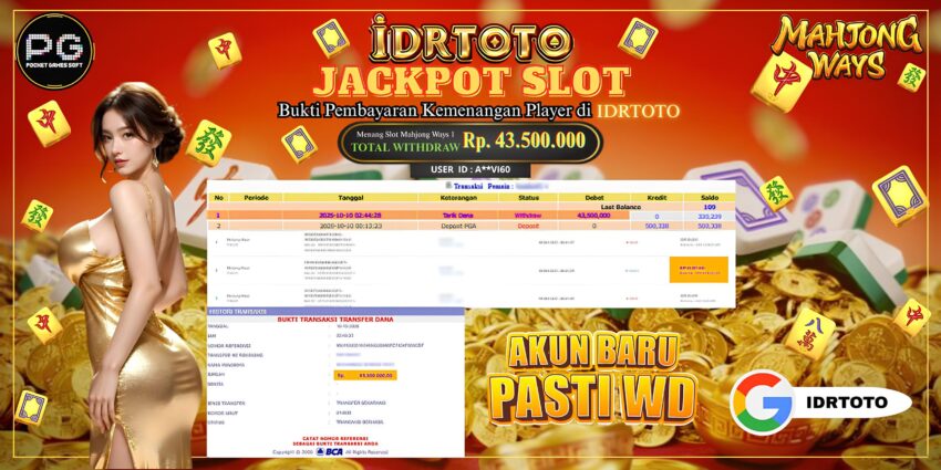 IDRTOTO BAYAR LUNAS JACKPOT PERMAINAN SLOT MAHJONG WAYS 1 Rp.43.500.000 – LUNAS