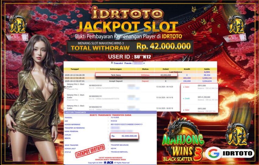 IDRTOTO BAYAR LUNAS JACKPOT PERMAINAN SLOT MAHJONG WINS 3 Rp.42.000.000 – LUNAS