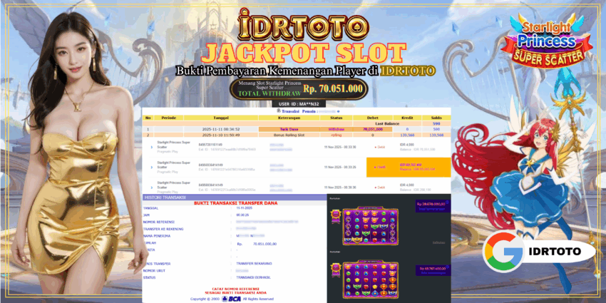 IDRTOTO JACKPOT PERMAINAN SLOT STARLIGHT PRINCESS SUPER SCATTER Rp.70.051.000 – LUNAS
