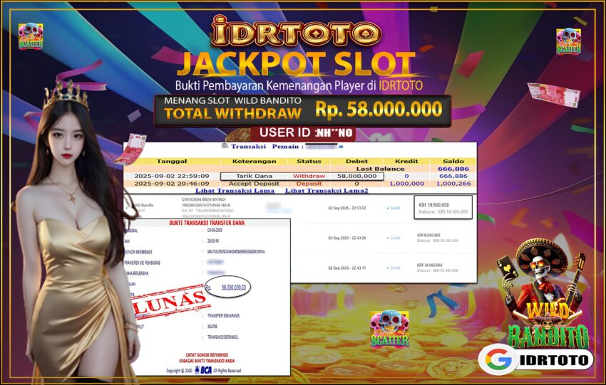 IDRTOTO BAYAR LUNAS JACKPOT PERMAINAN SLOT WILD BANDITO Rp.58.000.,000 – LUNAS