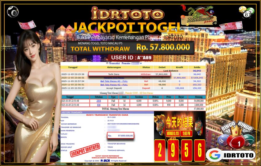 IDRTOTO BAYAR LUNAS JACKPOT PERMAINAN TOGEL TOTO MACAU P5 Rp.57.800.000 – LUNAS