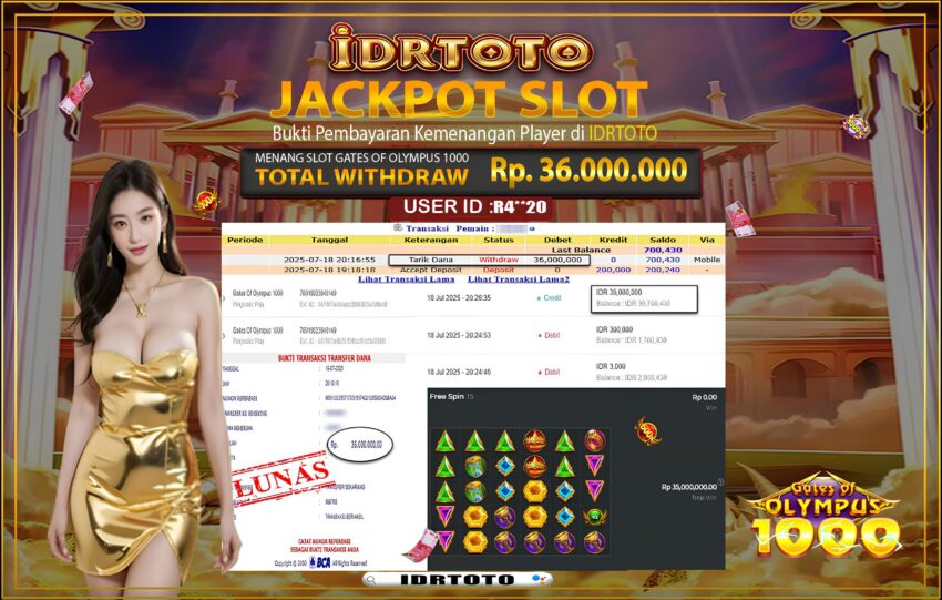 IDRTOTO JACKPOT SLOT GATES OF OLYMPUS 1000 Rp.36.000.000- LUNAS