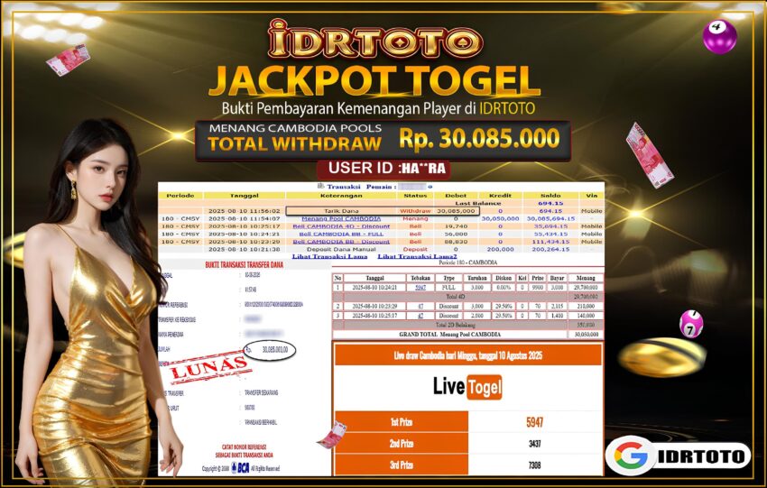 IDRTOTO JACKPOT TOGEL CAMBODIA POOLS Rp.30.085.000- LUNAS