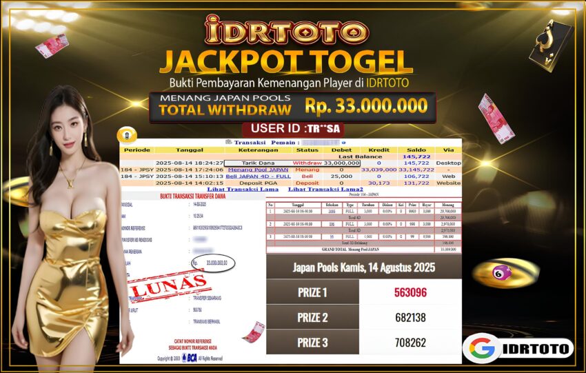 IDRTOTO BAYAR LUNAS TOGEL JAPAN POOLS Rp.33.000.,000 – LUNAS
