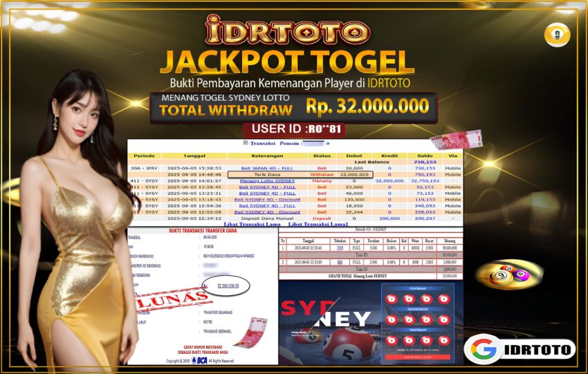 IDRTOTO BAYAR LUNAS TOGEL SYDNEY LOTTO Rp.32.000.000 – LUNAS