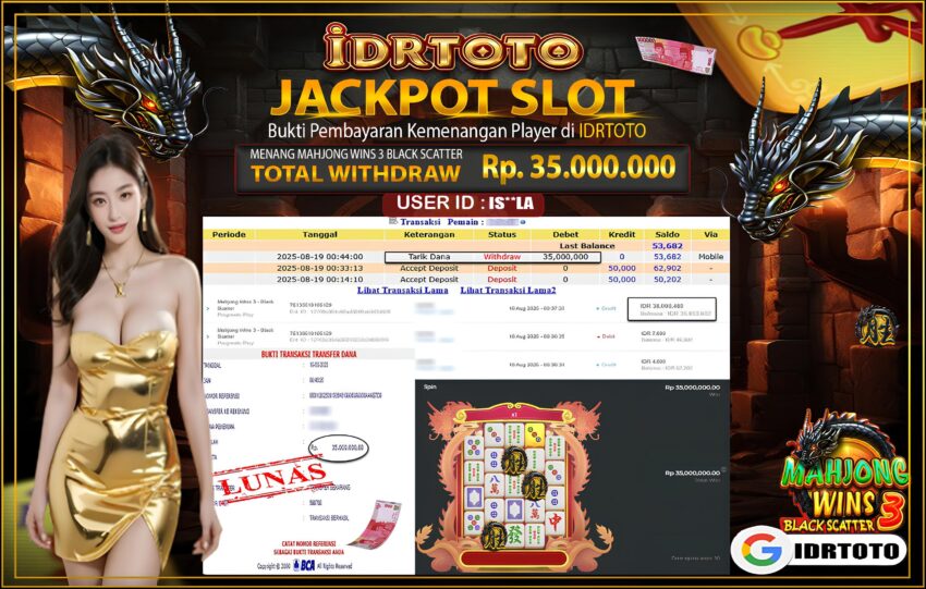 IDRTOTO BAYAR LUNAS SLOT MAHJONG WINS 3 BLACK SCATTER Rp.35.000.,000 – LUNAS